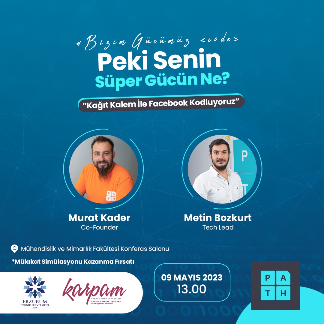 ETÜ-KARPAM tarafından Path Yazılım/İstanbul şirketi ile 9 Mayıs Salı günü saat 13:00’da Mühendislik ve Mimarlık Fakültesi konferans salonunda teknik seminer düzenlenecektir. Mülakat simülasyonu ve staj ödüllü seminerimize tüm öğrencilerimiz ve öğretim üyelerimiz davetlidir.