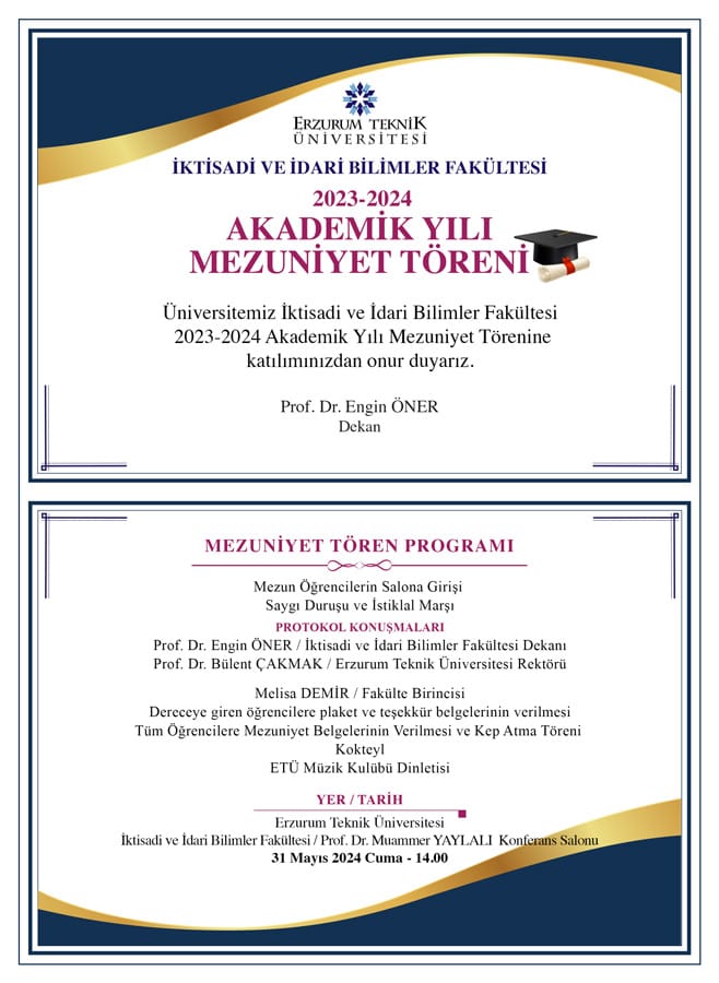 2023-2024 Akademik Yılı İktisadi ve İdari Bilimler Fakültesi Mezuniyet Töreni Programı