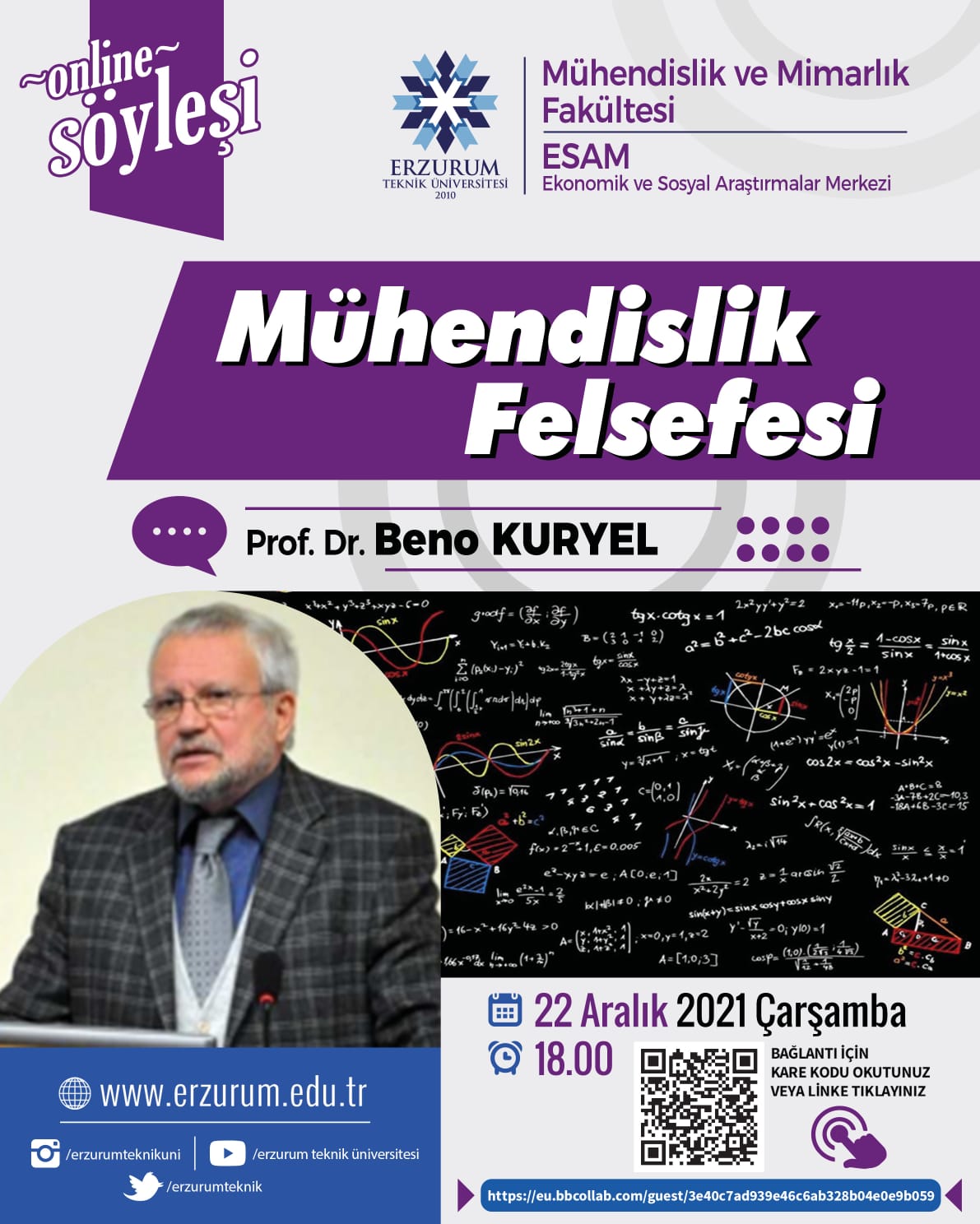 Prof. Dr. Beno Kuryel’in katılacağı “Mühendislik Felsefesi” başlıklı söyleşinin muhtemel satır başları: Matematik bir zekâ ürünü değil bir kültürdür ve tarihsel evrime sahiptir. “İnsanı tüm varlığı ile sömüren bir sistem, insanın düşünmesini istemez. Bugün üniversitelerde sistem, felsefe gibi konuları birer genel kültür dersi olarak görüyor. Ben bunu genel kültür olarak değil, toplumsal bir sorumluluk olarak görüyorum.” Epistemoloji başta olmak üzere birçok felsefi disiplin mühendislik ve matematik ile doğrudan bağlantılıdır. “Matematik ve mühendislikte formüller ve kalıplaşmış bilgiler mevcut felsefede ise düşünsel özgünlük vardır. Felsefe ve mühendisliğin birleşimi ile yapılan tanımlar tam anlamıyla yerini buluyor.”