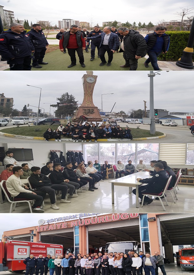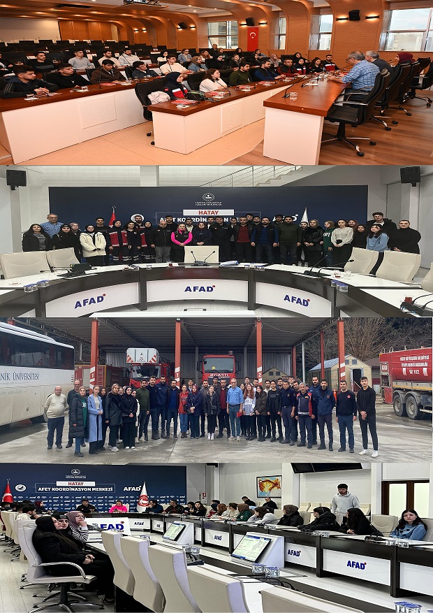 6 Şubat 2023 Kahramanmaraş merkezli depremler sonucu etkilenmiş olan Adıyaman ve Hatay illerine depremin boyutunu, geçen bir yıllık dönemde bölgede yaşananları ve yapılan faaliyetlerin gözlemlenmesi ve saha araştırması amacıyla Arama Kurtarma Becerileri I dersi kapsamında Acil Yardım ve Afet Yönetimi Bölümü öğrencileri ve Sağlık Bilimler Fakültesi öğretim üyelerinin katılımıyla 13-15 Şubat 2024 tarihleri arasında teknik gezi düzenlenmiştir. Saha çalışmasında depremden şimdiye kadarki tecrübelerini bizimle paylaşan ve desteklerini esirgemeyen Hatay Mustafa Kemal Üniversitesi Rektörü Prof. Dr. Veysel EREN’ e, Adıyaman ili Belediye Başkanı Dr. Süleyman KILINÇ’ a, Hatay Mustafa Kemal Üniversitesi Sağlık Bilimleri Fakültesi Acil Yardım ve Afet Yönetimi Öğretim Üyeleri ve öğrencilerine, Hatay İl Afet ve Acil Durum Müdürlüğü ve Ekibine, Hatay Büyükşehir Belediyesi itfaiye Daire Başkanlığı Ekibine, Adıyaman Belediyesi İtfaiye Müdürlüğü ve Ekibine ve tüm bölge halkına teşekkür ederiz.